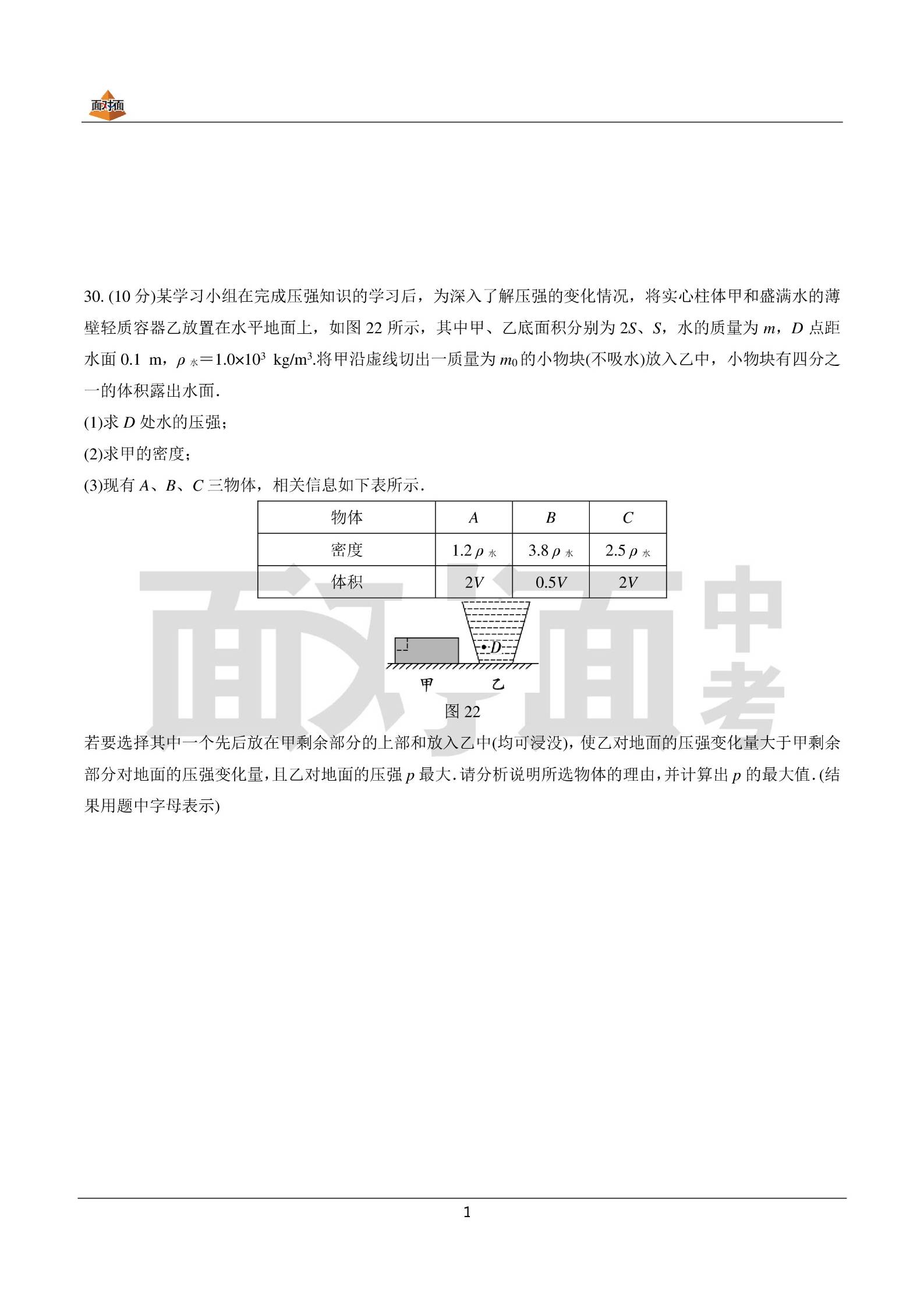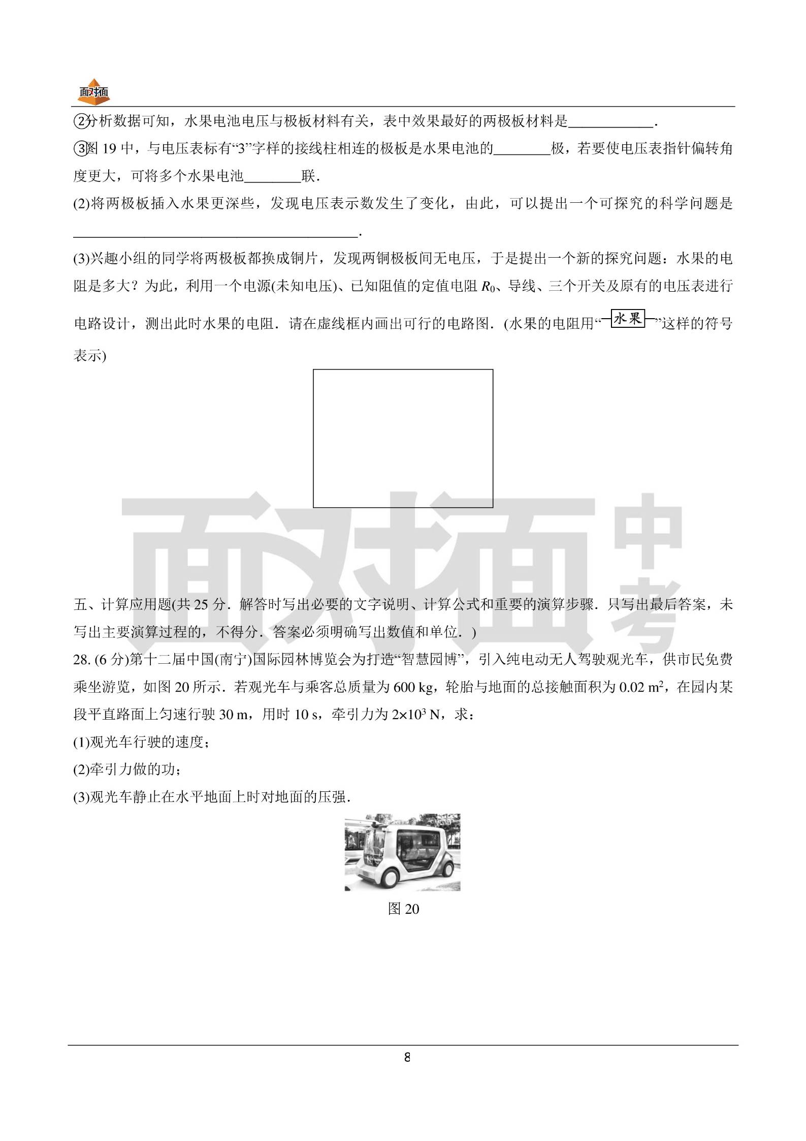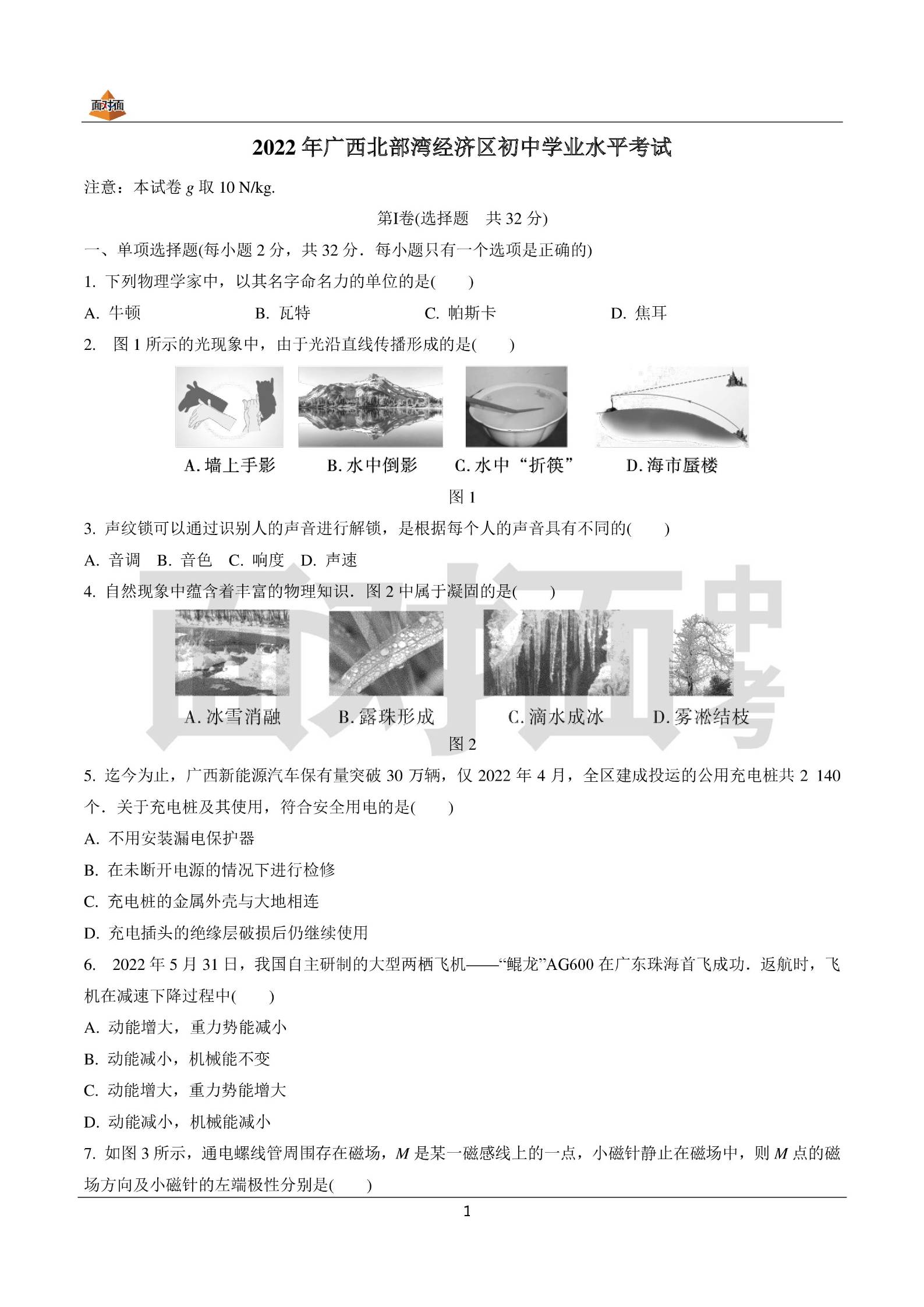 2022年广西北部湾物理模拟考卷子