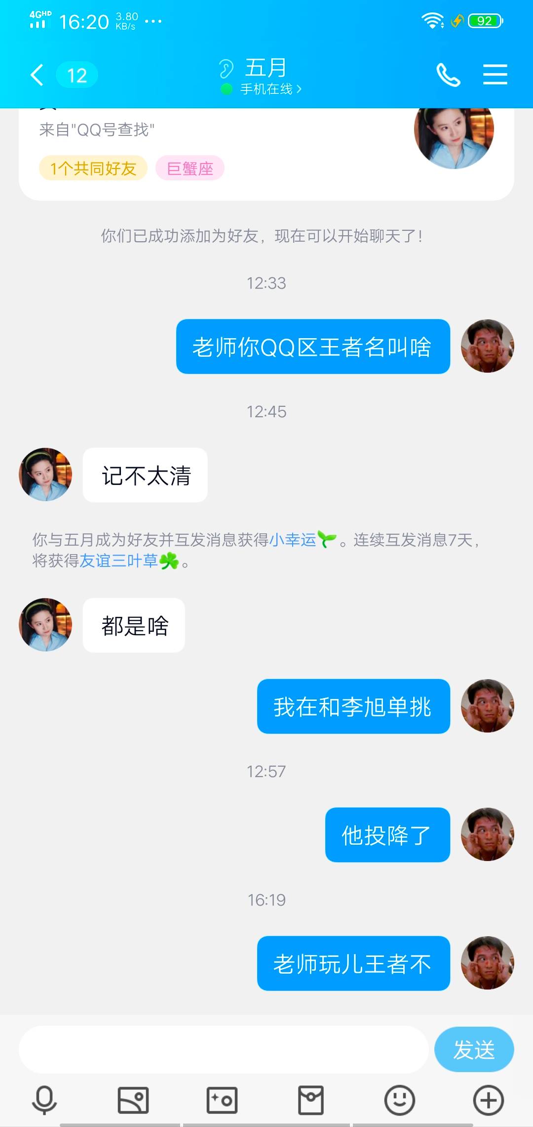 英语老师说他微信设那个东西了加不了她,不过他给我们说他QQ了,你说我算社牛吗