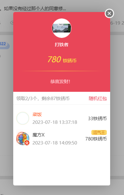 打赏了18铁锈币