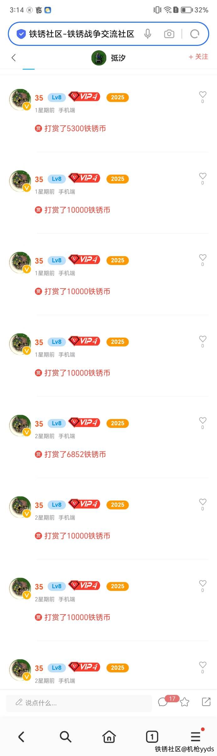 没毛病 我只是看排行榜时发现有人打赏了十五万币才去找的