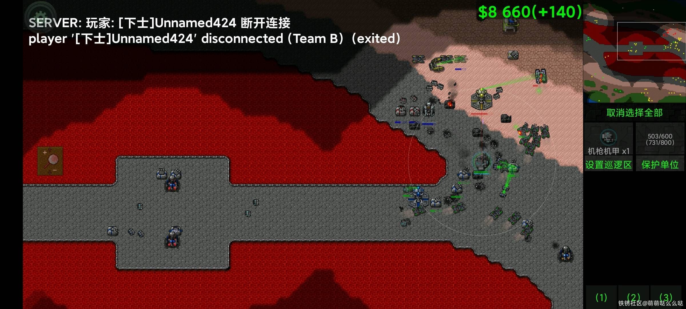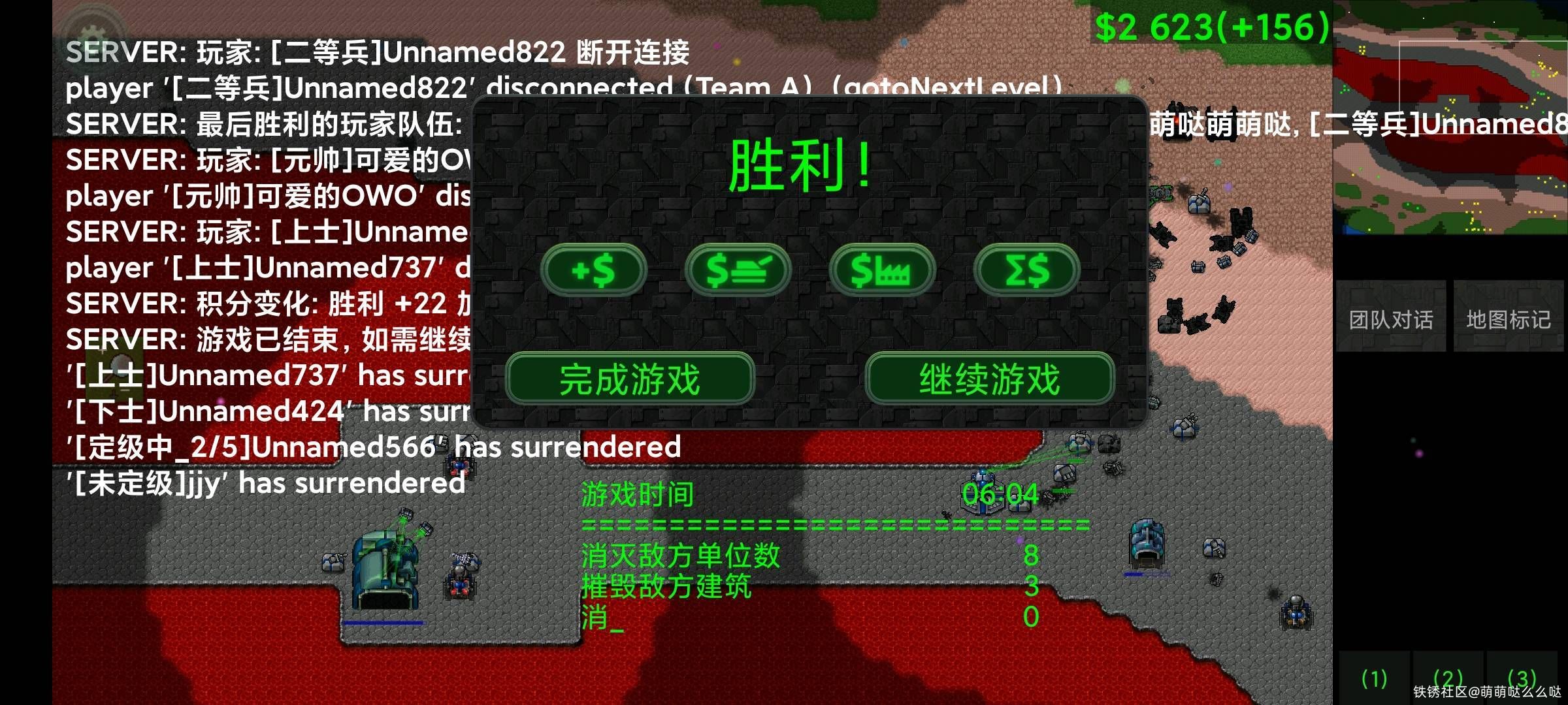 也是玩上机甲了,直接出1级采集器,然后直接出机甲,工厂一升级就刚刚好出机枪机甲,拿下游戏胜利。
