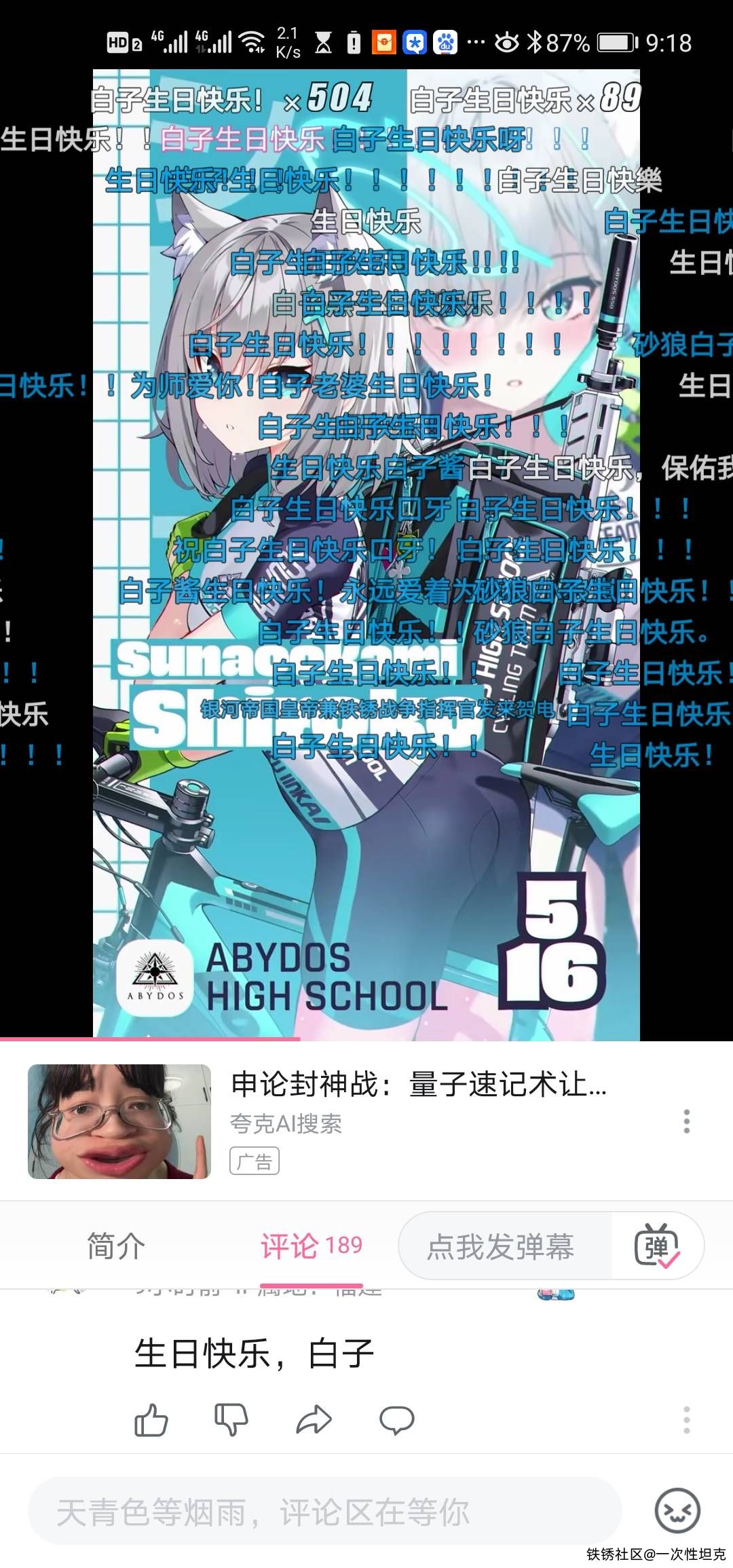 今天好像是游戏《碧蓝档案》中角色“砂狼白子”人设中的“生日”