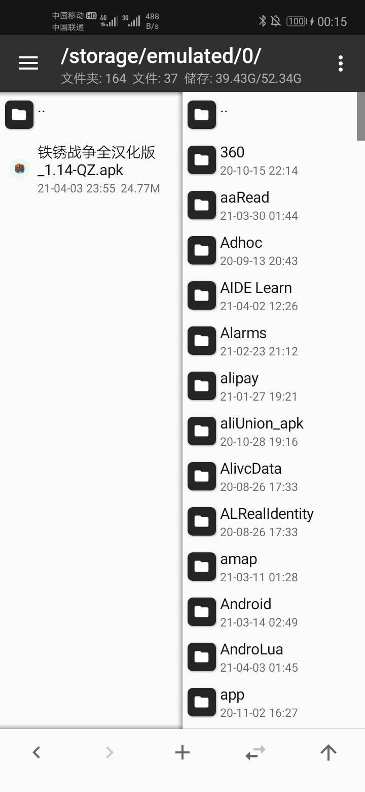 第一步:打开MT管理器侧滑打开安装包提取提取本地的铁锈战争安装包(图一)