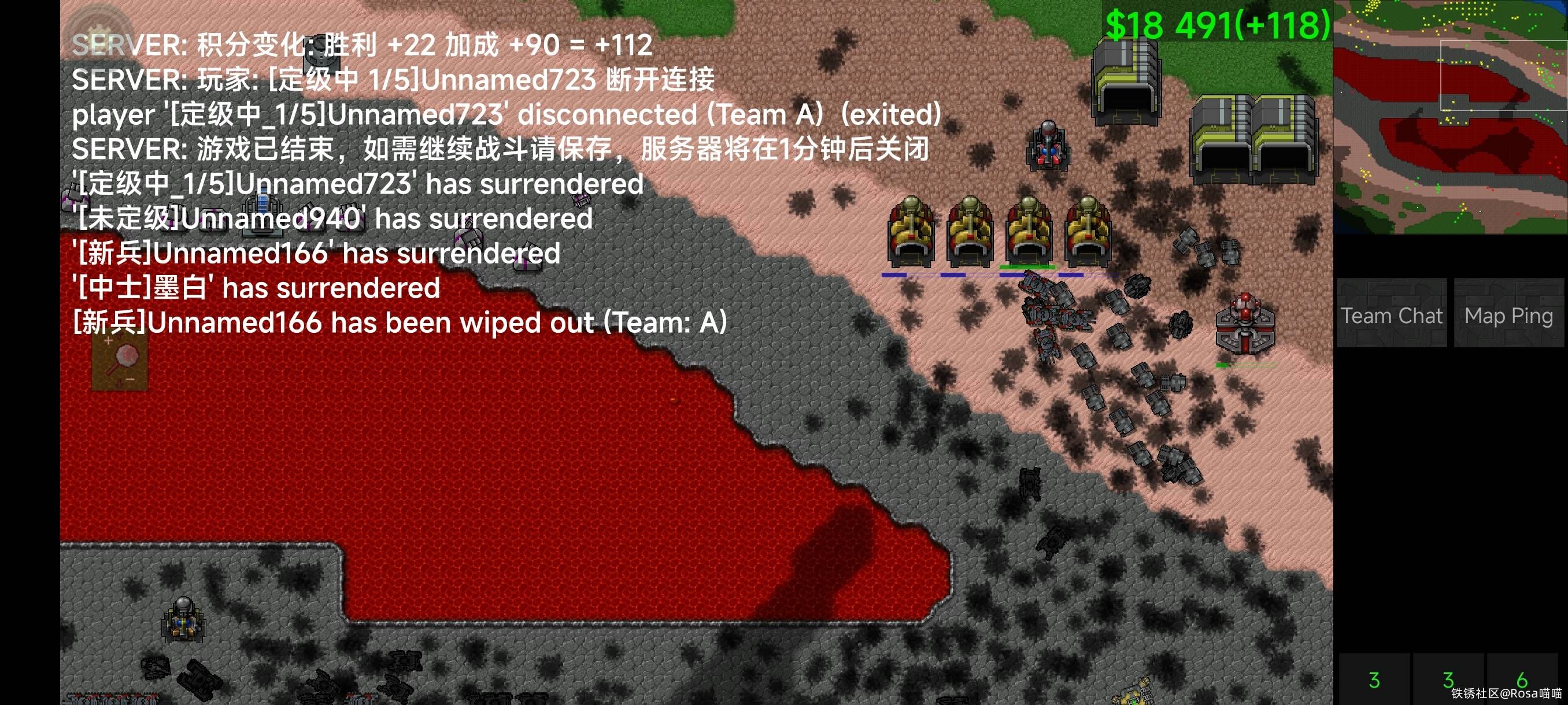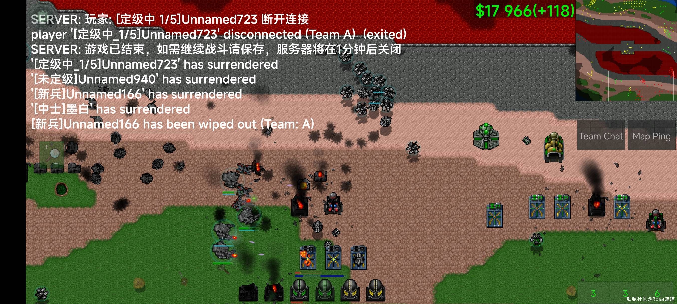 这一波空战后我们基本锅干碗净了,对面十几个空厂开始爆武直,陆军也协同进攻起来。最后被二号大哥的防线守住了。看到对面空陆一起打到家门口,我连防空机甲都不想点准备等死了,但是看到二号还没放弃,我还是点了,能活一会儿是一会。结果这波下去对面兵也没有了。而我居然还有五六个机枪机甲活着???莫名其妙就翻盘了。