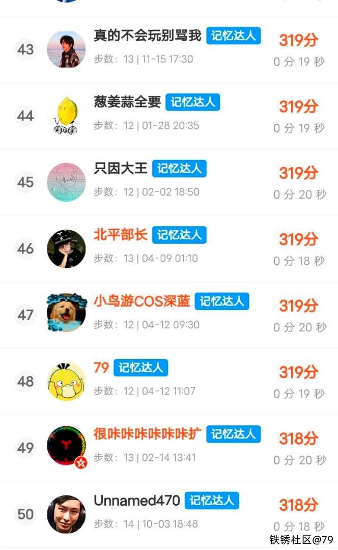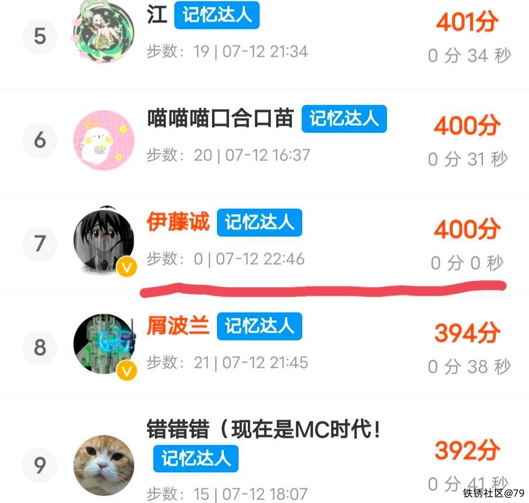 都是12步,一个19秒,一个20秒,20秒的排在前面;