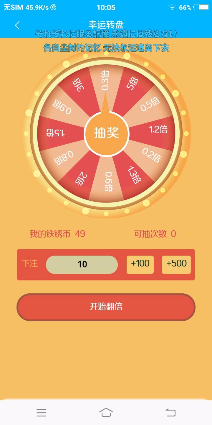我1000金币投进去抽到个0.5倍淦