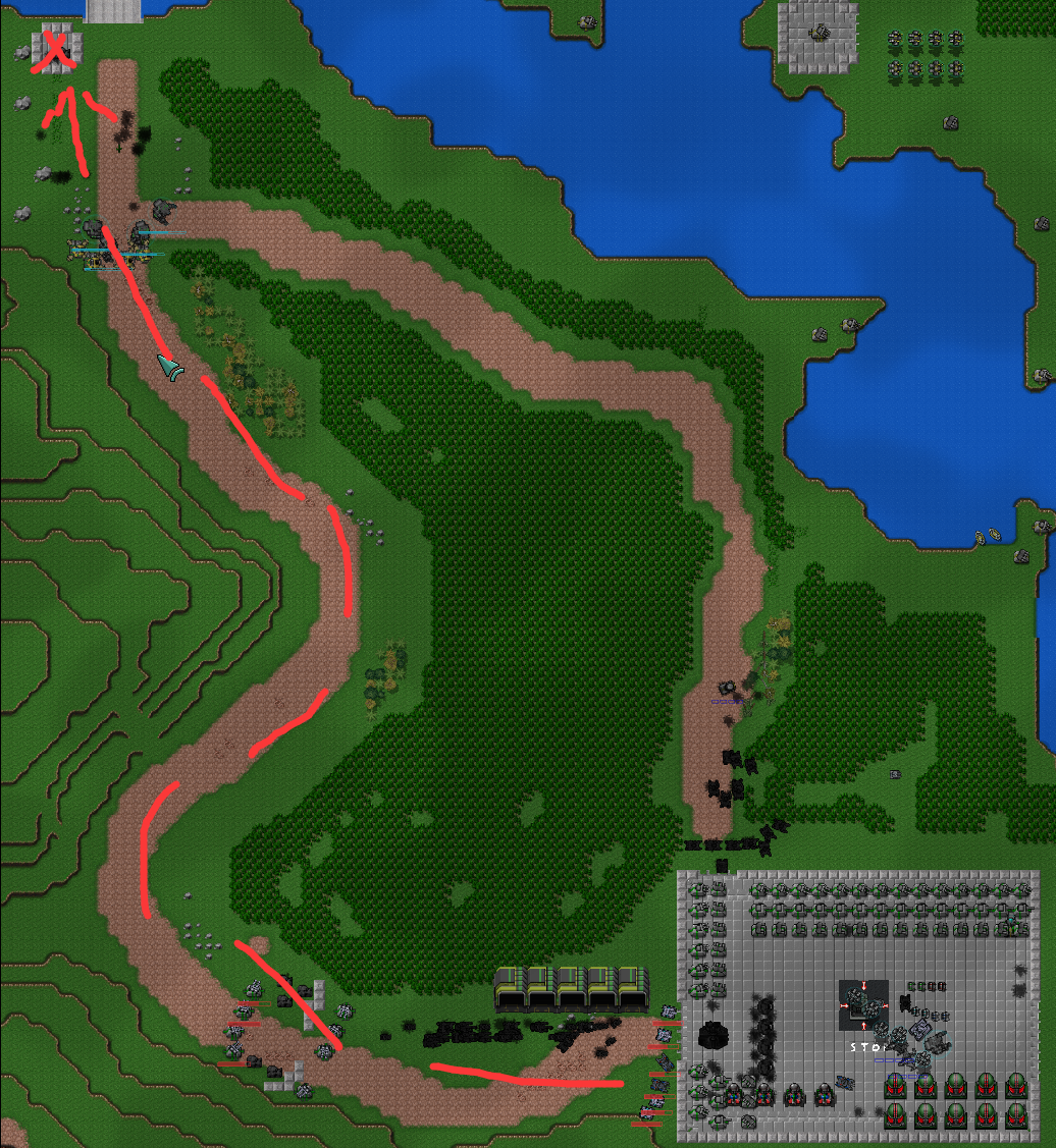 (温馨提示:X处有1个机枪和一个T2防空,打掉会出现剧情,有15只自爆虫埋伏)