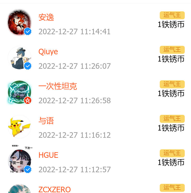 不要在意铁锈币,大家都当上运气王了以前开好多红包都当不了运气王现在开一个就能当上运气王