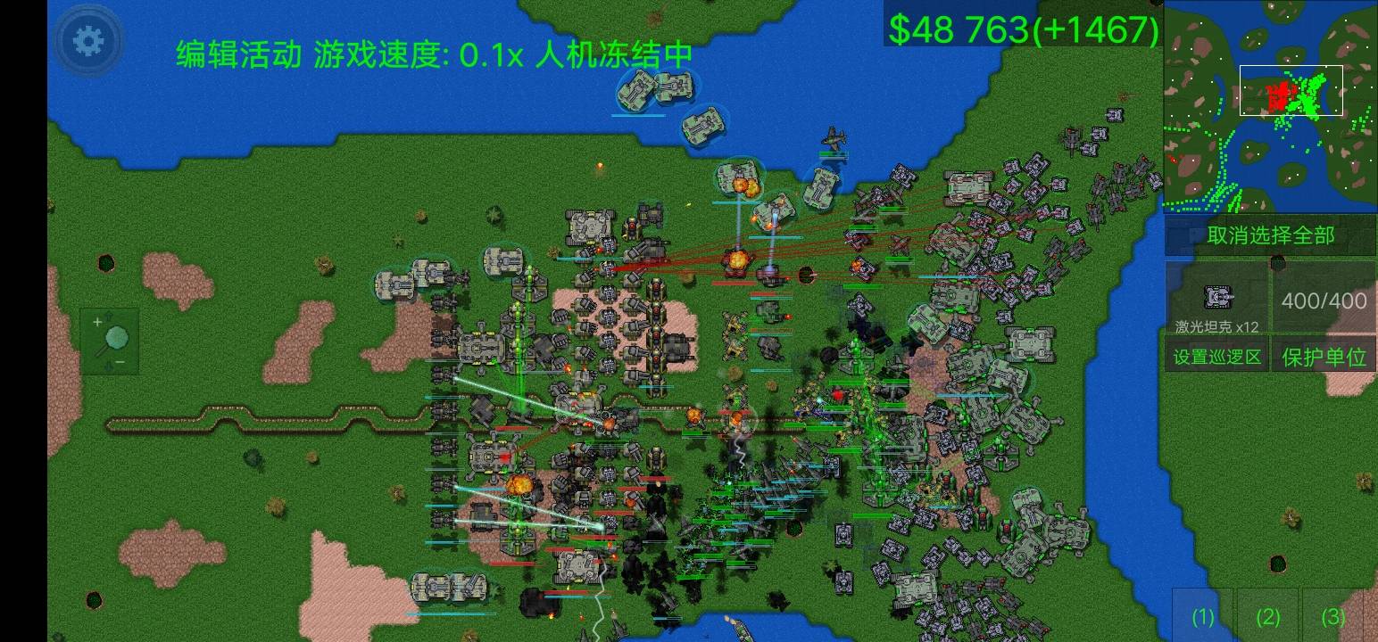 2.积攒一些“闪电单位”和“火焰单位”、“激光单位”这样的可以无视激光的特殊单位,把这样的特殊兵种加入你的部队。比如猛犸坦克、两栖喷气机、喷火机甲、激光坦克等。