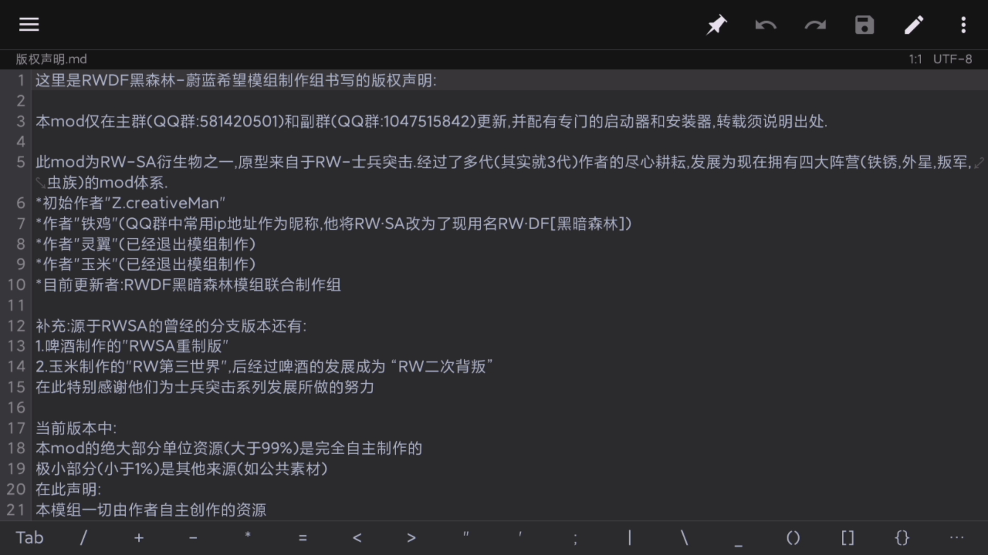 铁锈Mod 1、版权归
