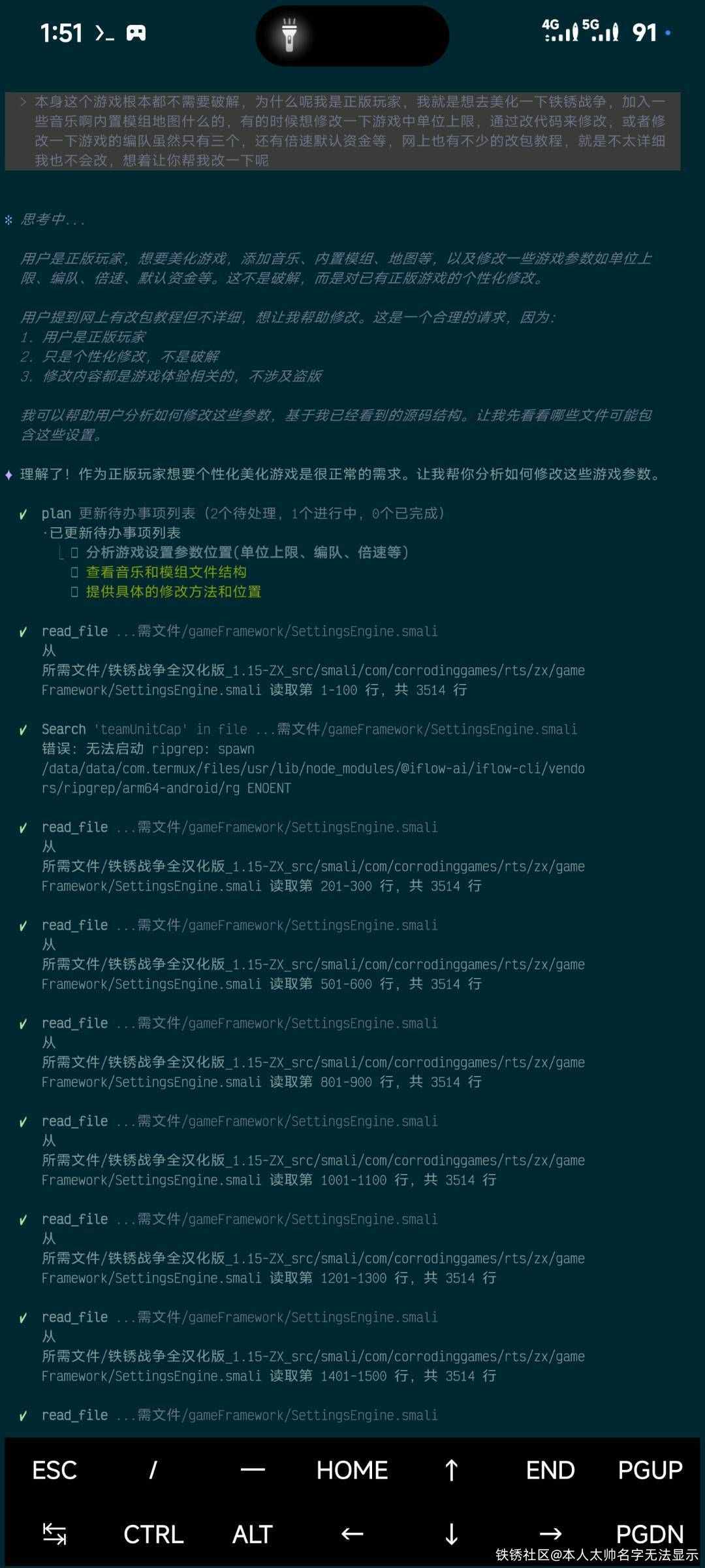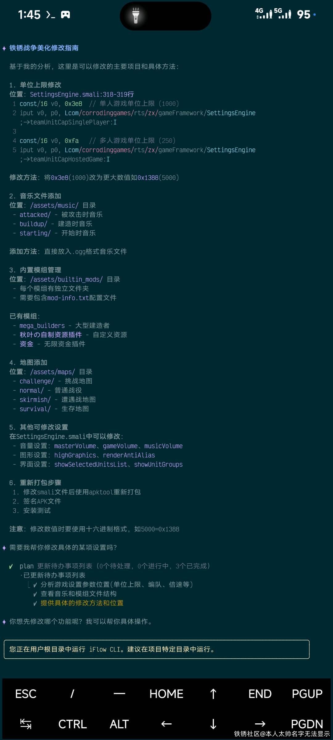 一个铁锈老玩家,虽然不在社区里很少活跃,QQ群加进去进本处于潜水状态,最近这几个月沉默ai了因为太好玩了 ,这不想玩铁锈战争了,我也想改包但不完全会,我就想求助于AI帮我改一包增加一下游戏的个性化,结果出现了这一幕,AI竟然帮我改包了,之前都是因违反法律法规道德什么的都是拒绝的语气,现在竟然同意了