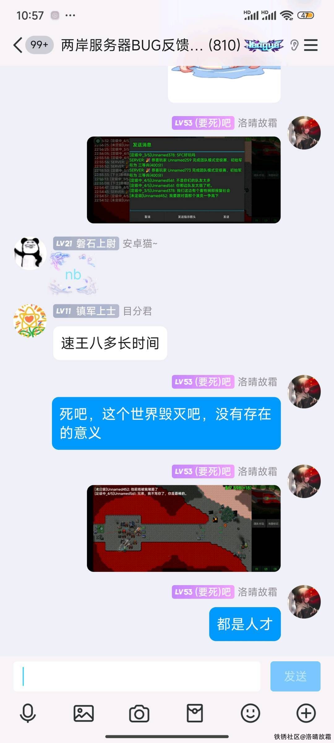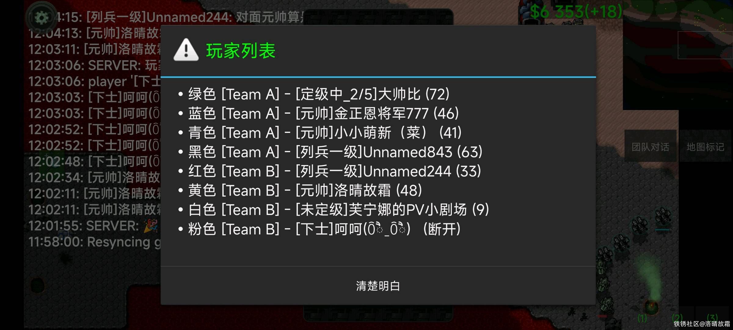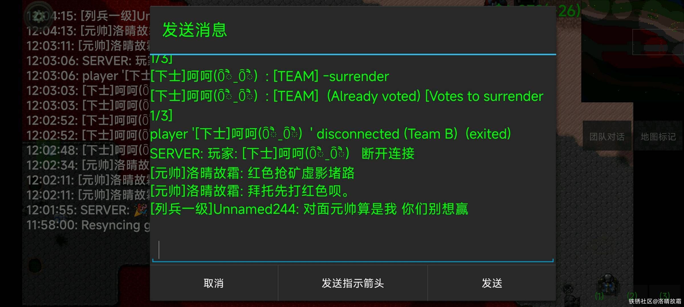 如果队友屯蛋或者太菜了,觉得没有希望了。但请不要折磨剩下还有希望的队友,反盘很难,但如果翻了,那不是很爽吗?队友菜让人绝望了,没人会说什么,挂机了,把家回收了,把矿点放出来了,没人说什么。但是家回收了矿点不放或者不挂机纯在一边看着,你跟那个让你绝望的那个人,一样傻。尤其还说风凉话的,更不是人。最后,输赢是否?都是我的技术,不如人。但我绝对不忍受恶心我的人,好好做个人吧。