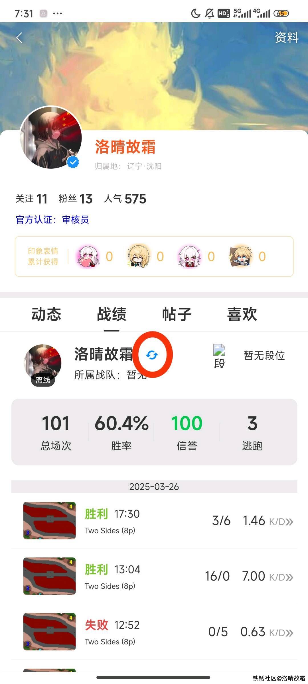 前几天看到一个问题,重新绑定怎么搞? 我自个也找了一下,没找着。 不过今天我可算看见了,给哪了? 在自己的主页里,点击战绩,你就会看到一个小蓝圈,点小蓝圈,然后照着里面做就行了。